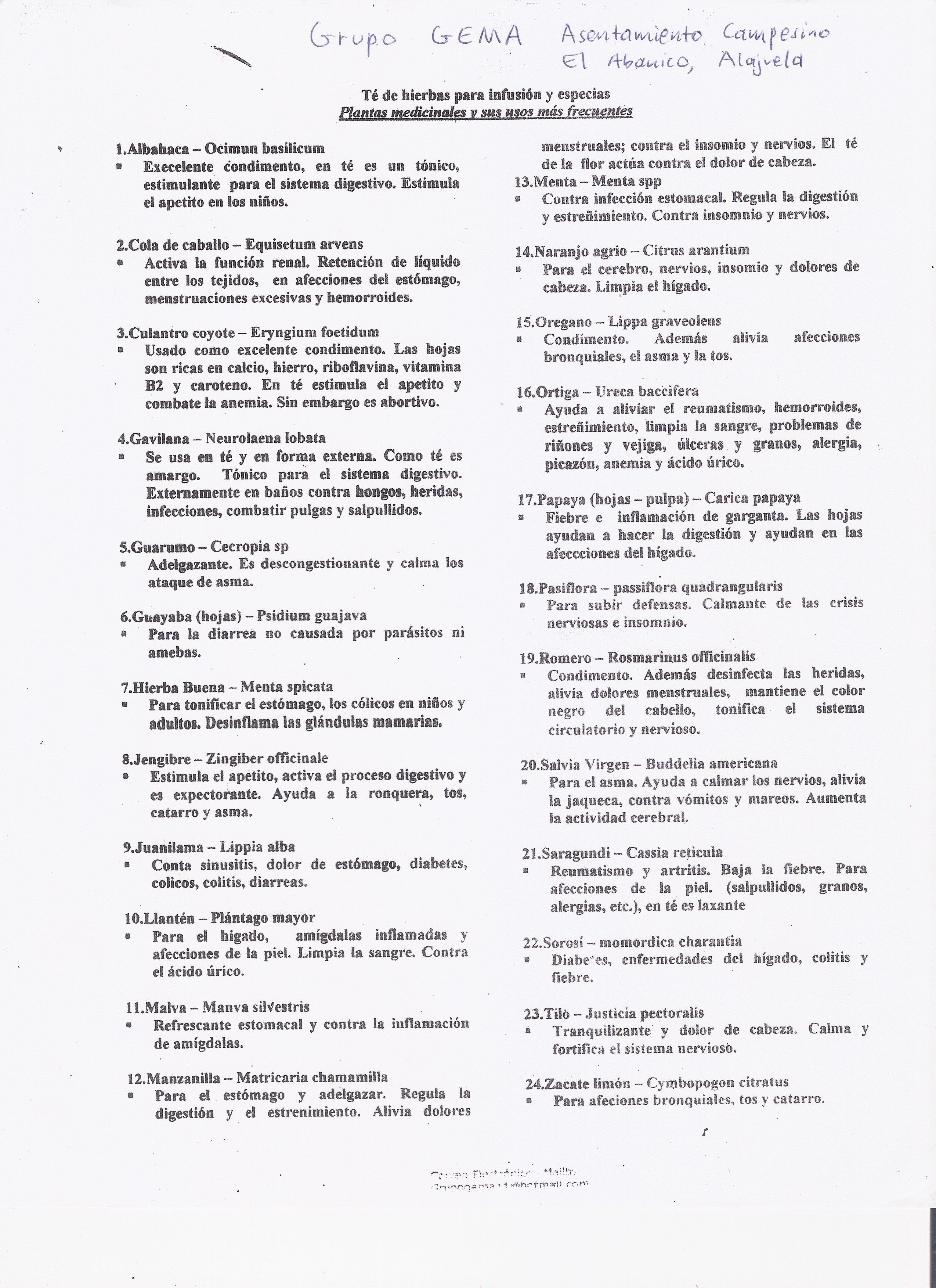 Plantas medicinales, Grupo GEMA (Alajuela)